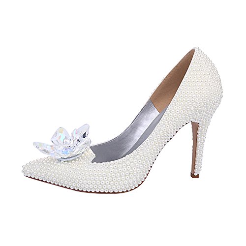 Best Seller! Clearbridal Women's Cinderella Wedding Bridal Shoes Pointed Toe Prom Evening Pumps Heels with Rhinestone Pearls Crystal Ma04115 UK8 Review